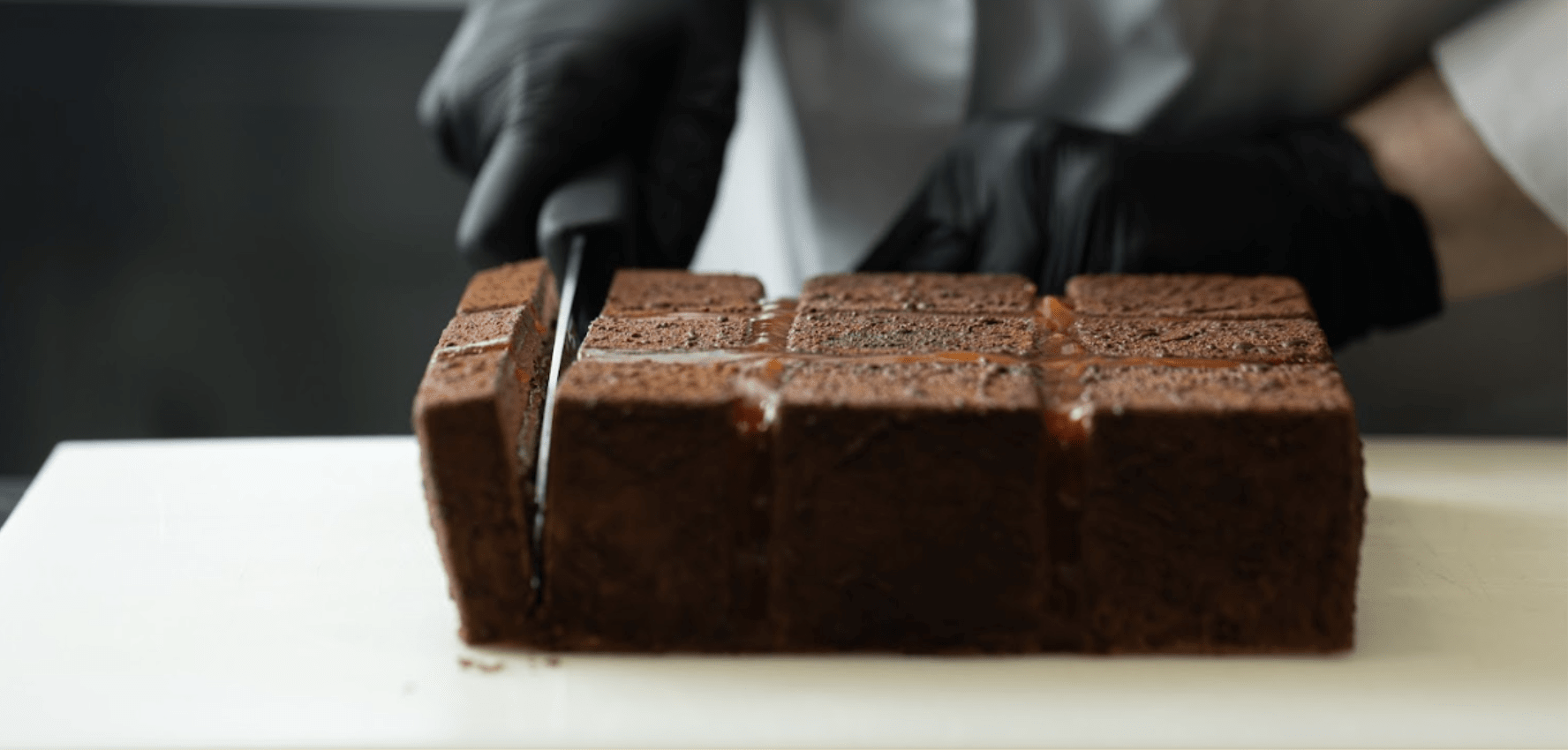 Vykrojte kávový piškot na čtverce a potřete ho tenkou vrstvou kávového feuilletine crunch.