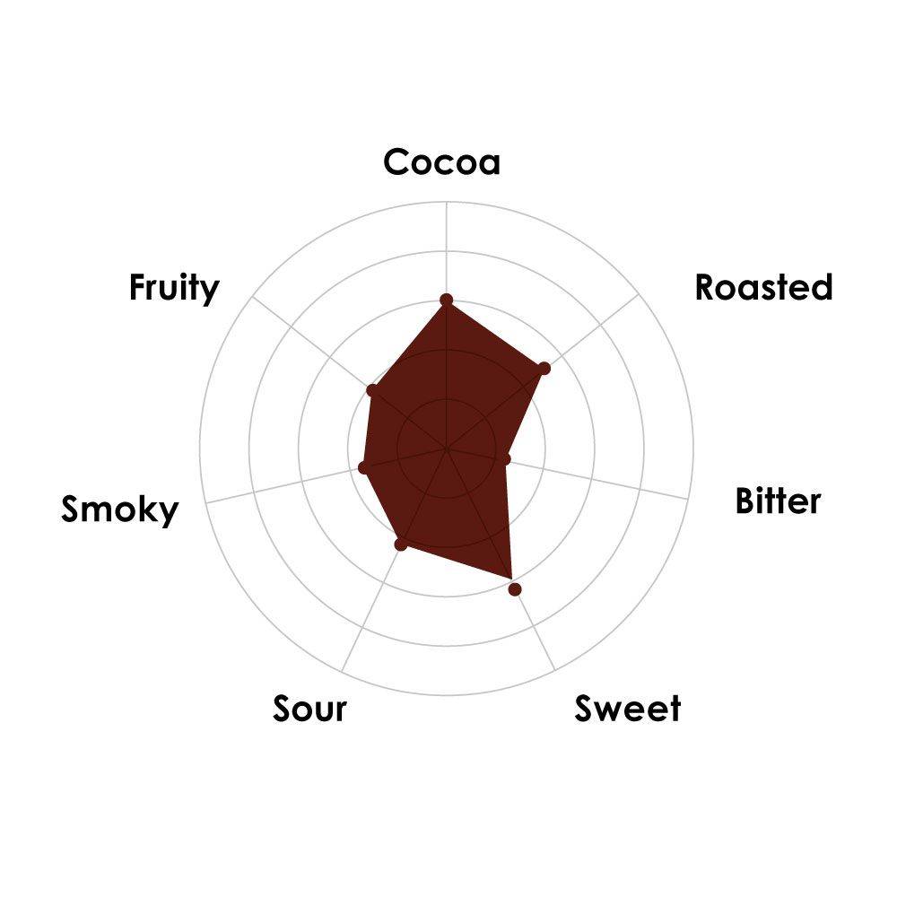 Ausgeprägter Kakaogeschmack und leichte Vanille-Aromen. Noten von Beeren, unterlegt mit einer sanften Bitterkeit. Enthält Milchfett, welches Fettreif verhindert.