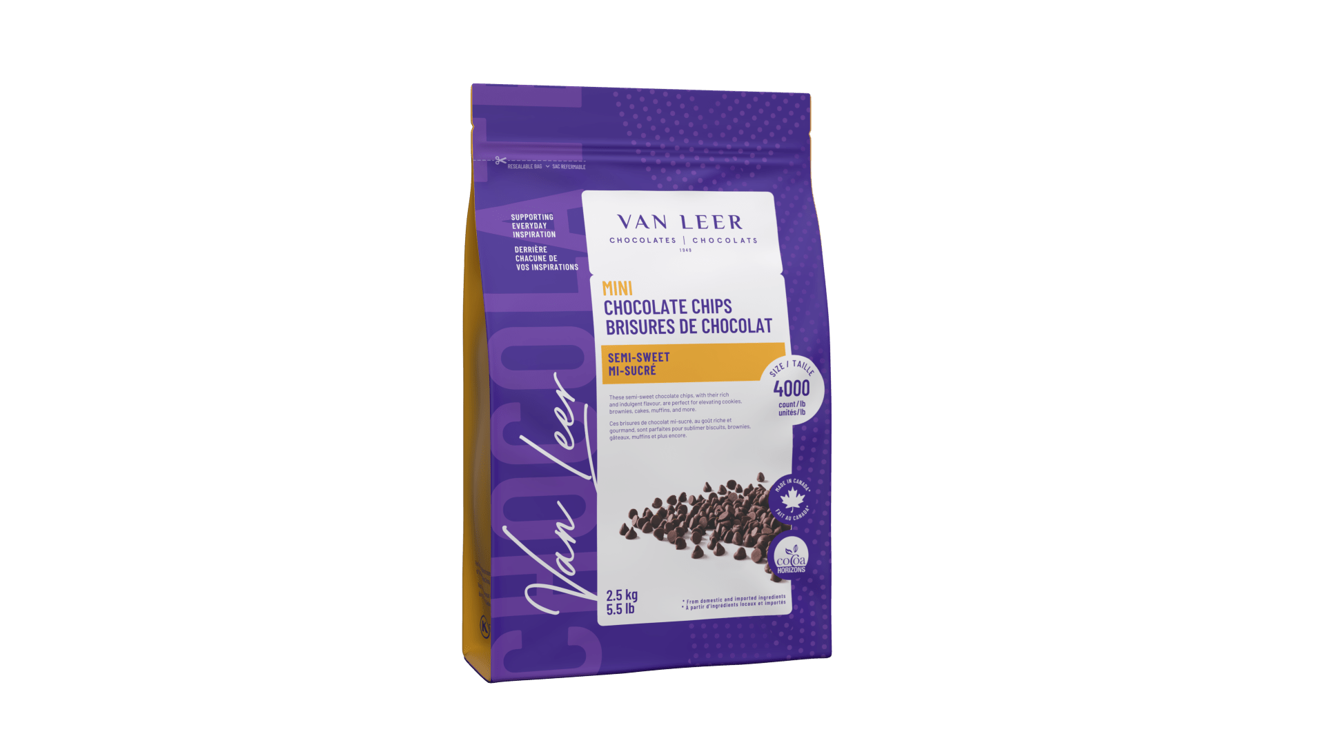 These 4,000 ct semi-sweet chocolate chips, with their rich and indulgent flavour, are perfect for elevating cookies, brownies, cakes, muffins, and more.