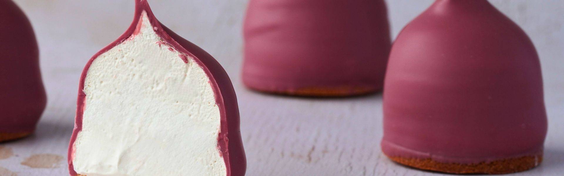 Temper the RUBY chocolate using your preferred method, and coat the cream puffs.