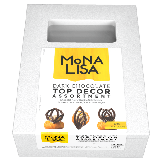Dark Chocolate Waves (L: 55, W: 34mm) are thin and have a delicate finish. You can use Waves to design your creation's structure by adding new shapes. These decorations could be used on choux, éclairs and ice creams.