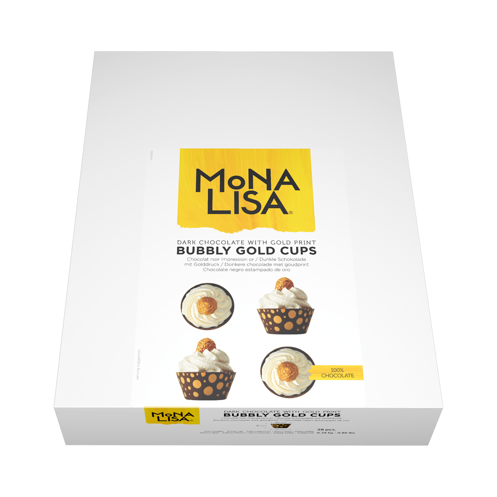 Here’s the world’s first printed chocolate cup: Bubbly Gold Cup. It’s ready for you to fill, add sponges, crispy textures, etc In short: a one-of-a-kind cup that adds a twist of glamorous gold to your dessert presentations. It’s great for xmas desserts – not to miss for turning any dessert into a special occasion.
