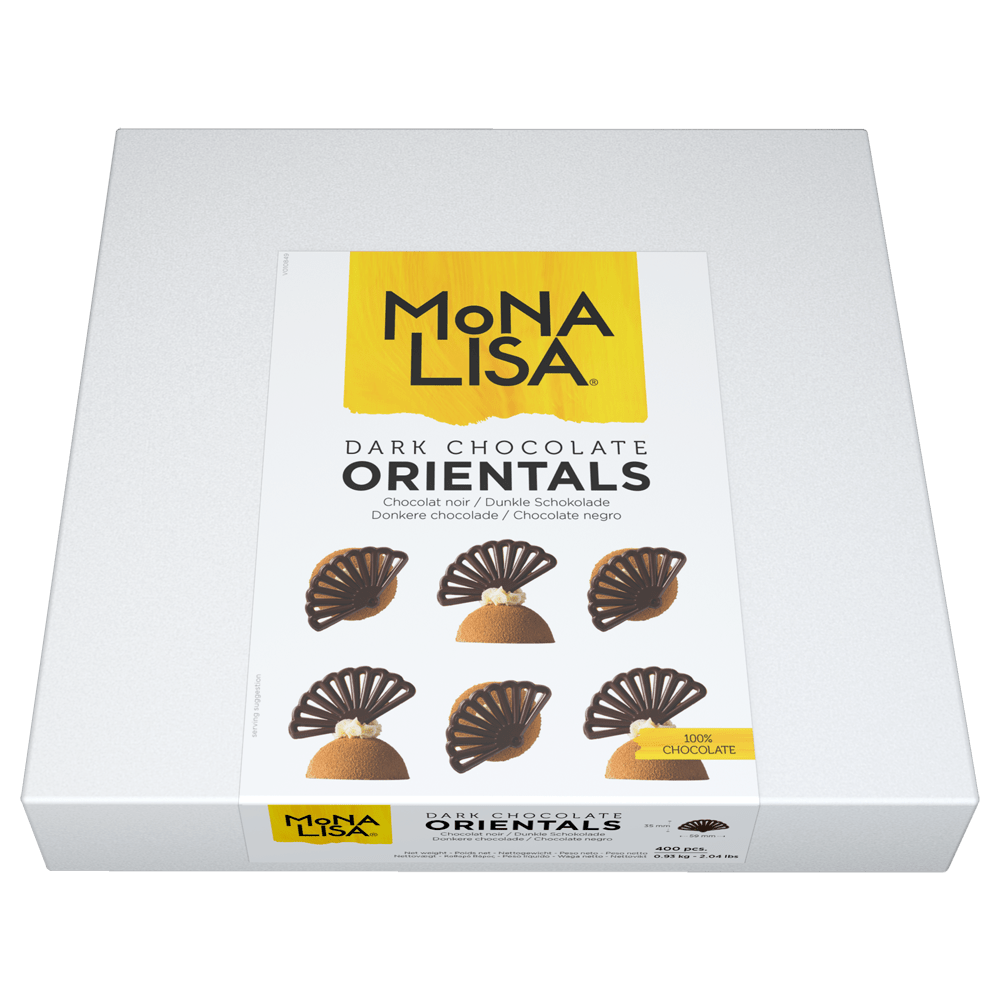 100% Dark Chocolate Oriental open decorations (D: 30mm) are thin yet rich in chocolate flavour. Ideal for use on choux, éclairs and ice creams. The choice is yours!