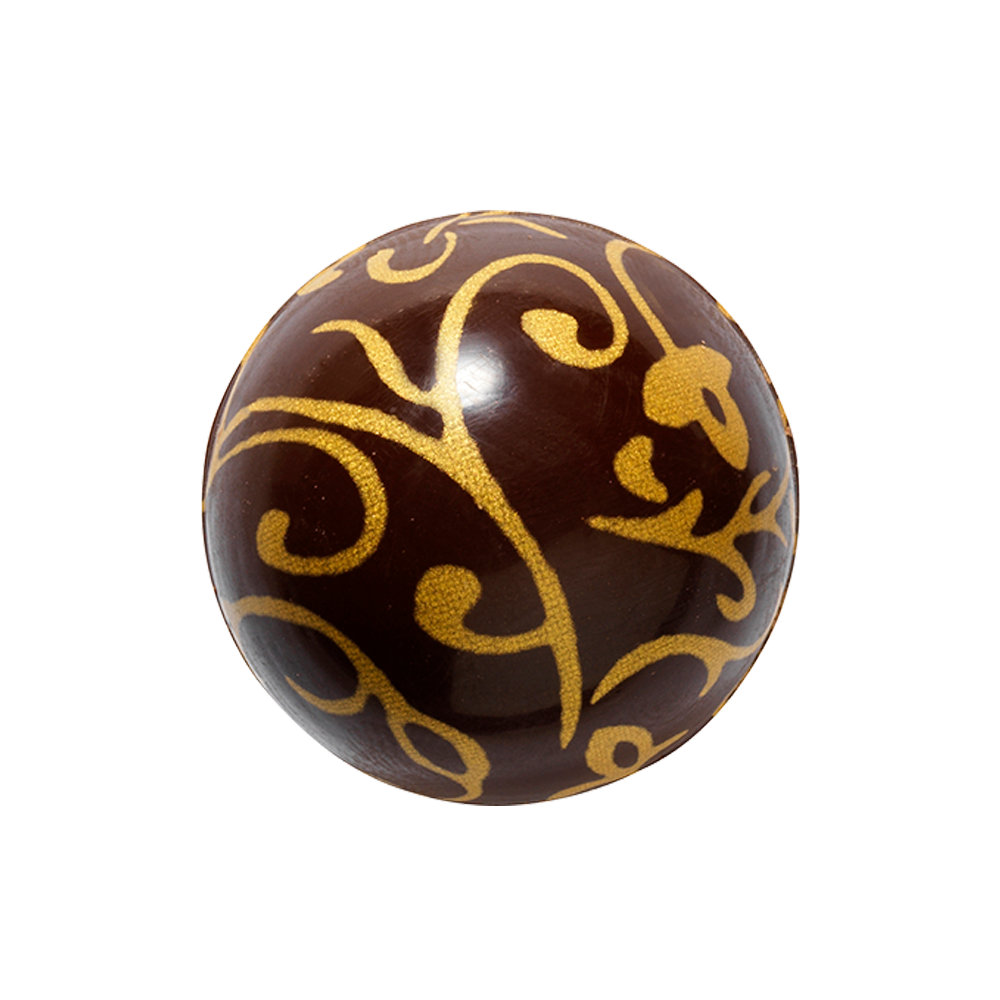 Hollow 30mm cocoa based balls with an elegant golden curl print. This is the perfect decoration to add class to cakes with ease.