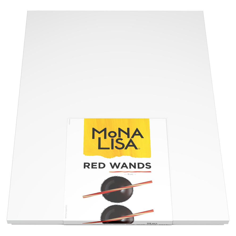 With the red candy cane like design on 16 cm delicate White Chocolate sticks, Red Wands give a hint of sophistication on cakes and domes.