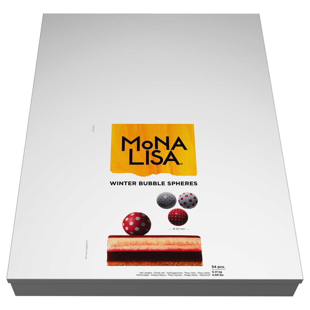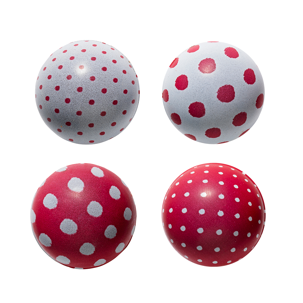 Assortment of four red and white printed hollow 30mm diameter chocolate balls. Perfect to decorate cakes and pastries with charm.