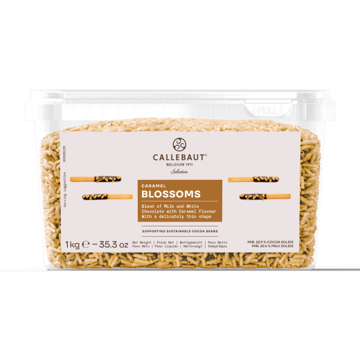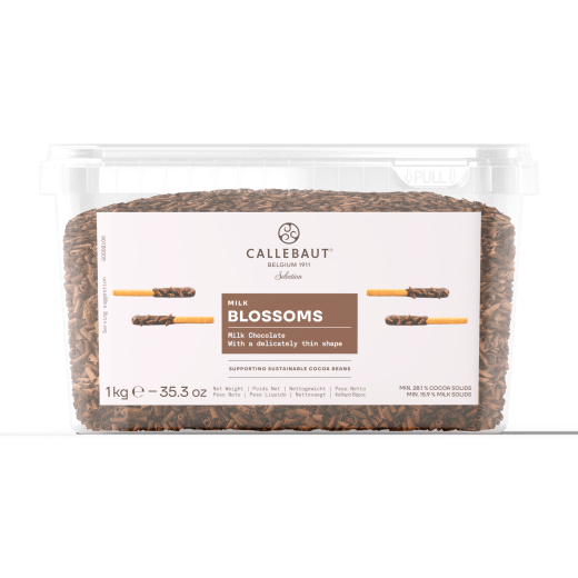 Our Chocolate Blossoms capture the essence of Callebaut's artistry: delicate, tiny rolls resembling unfurling flower petals, made from authentic chocolate in a tempting array of flavours. Available in rich dark with intense cocoa notes, creamy milk with its round cocoa body, velvety white with its mild character, sumptuous caramel with its buttery sweetness, vibrant strawberry with its bold fruity character and striking marbled varieties that combine contrasting chocolates for visual impact. Each meticulously crafted coil has an exceptionally thin profile that melts effortlessly on the palate, creating a remarkably smooth mouthfeel that enhances the taste experience. Professional pastry chefs and chocolatiers love these versatile decorations for their ability to transform ordinary creations into extraordinary indulgences with minimal effort. Simply sprinkle generously over shakes, ice creams, doughnuts, cupcakes or pastries to add both sophisticated visual appeal and delightful textural contrast. Their perfect dimensions, make them ideal for both dramatic visual impact and practical application, allowing you to enhance your desserts with the unmistakable elegance that only real Callebaut chocolate can provide.
