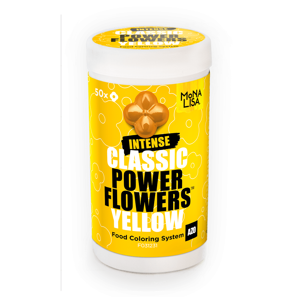 Classic Power Flowers Yellow Intense. Intense yellow food color (E102) AZO based on ultra-concentrated cocoa butter. 50 grams. Tip for Easter