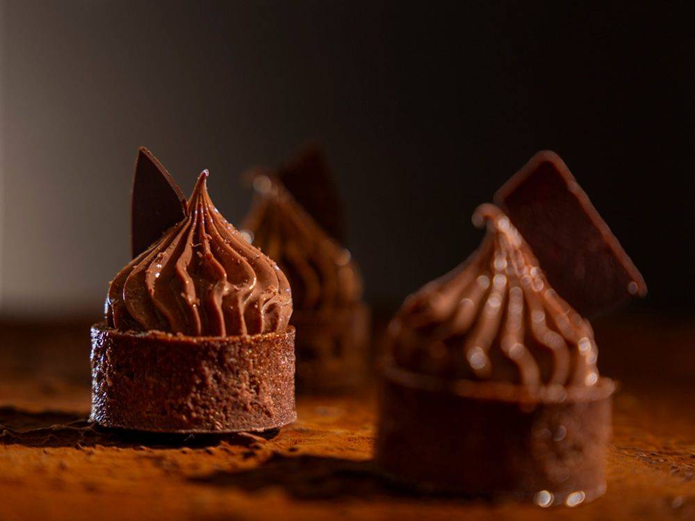 Inspired by the French classic Poire Belle Hélène, this tart brings together almond–cocoa shortbread, pear‑forward cream, and a silky Fleur de Cao chocolate namelaka. The balance of ripe pear, Uganda vanilla, and deep chocolate defines its refined simplicity and modern elegance. As Chef Nicolas Botomisy says: “From the French classic ‘Poire Belle Hélène’ dessert, this tart balances the pears, Uganda vanilla beans and the chocolat.”