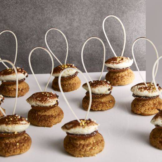 Inspired by the choux and sushi maki, Choukis are a truly eye-catching creation! You will learn a new technique to cook the pâte à choux using a panini machine and also discover a quite original flavor pairing combining curry and maple syrup.