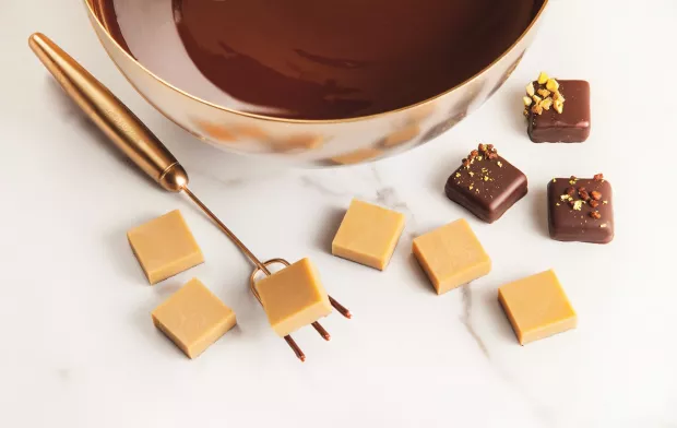Wir vermitteln dir das nötige Grundlagenwissen, um die klassischen Schokoladenartikel herzustellen. In theoretischen und praktischen Teilen zeigen wir dir, wie du Schokolade mit verschiedenen Methoden temperieren, Ganache, Formpralinen und Schnittpralinen herstellen sowie deinen Kreationen eine ansprechende und zeitgemäße Präsentation verleihst.