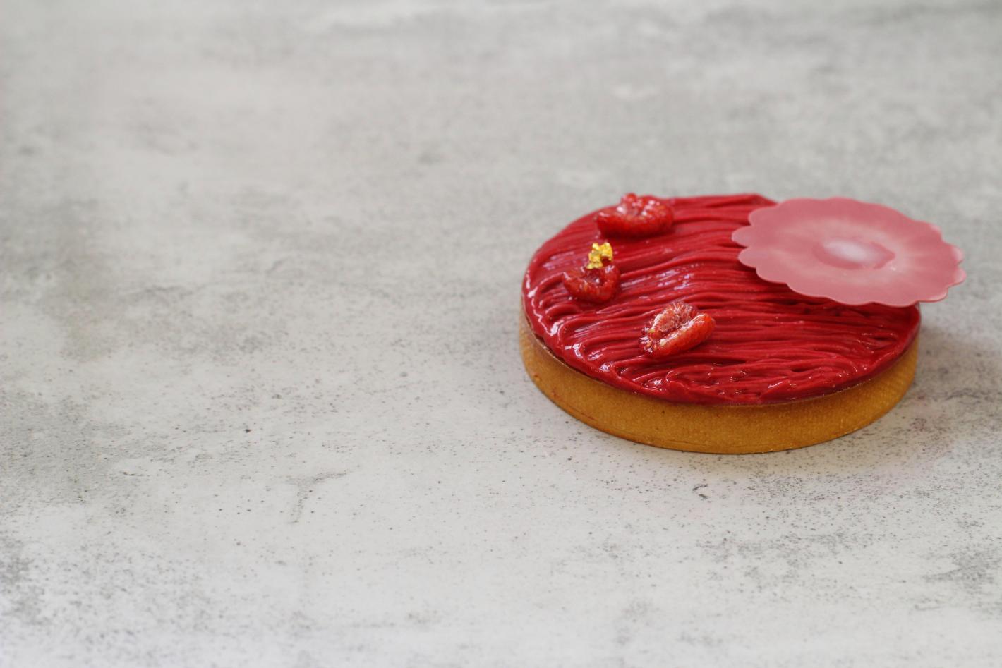 - Tarta pistacja/ truskawka/ kwiat pomarańczy