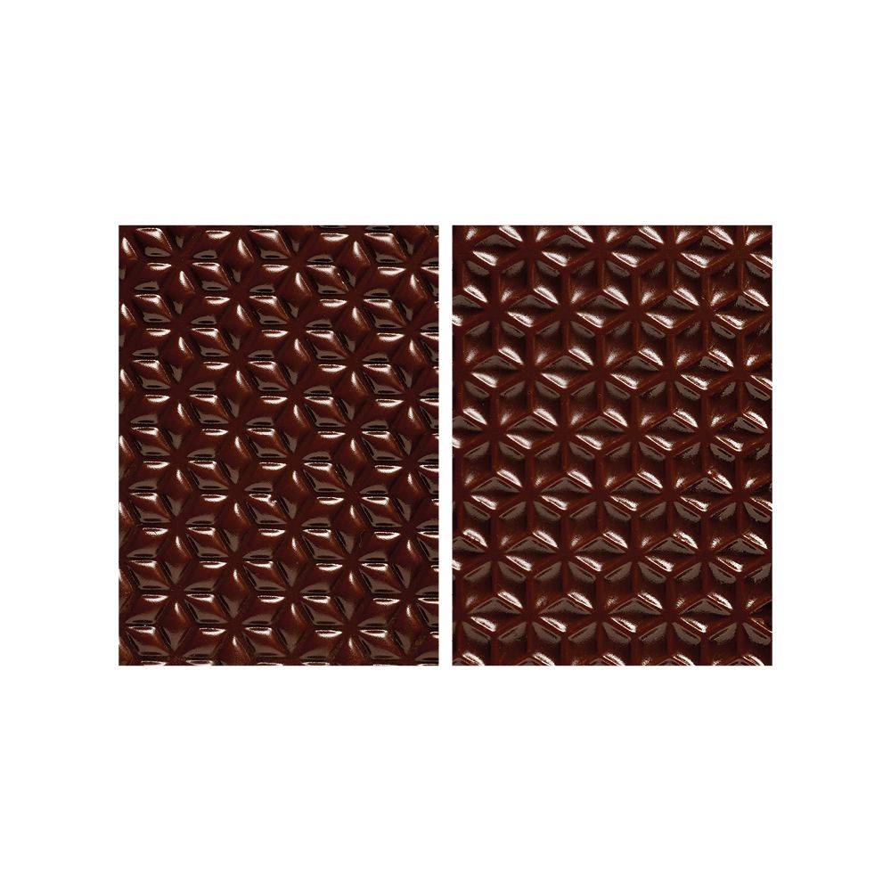 Cubic Texture Sheet for creating Texture on chocolate and confectionery. Dimensions of the sheet are 585x385mm. Each pack contains 15 reusable sheets