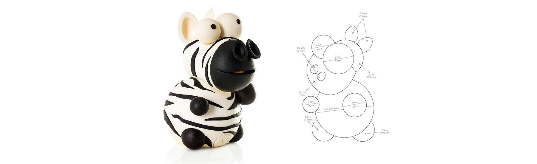 Para realizar las líneas de la zebra utilizar pasta de azúcar (Carma) teñida con colorante en pasta negro.