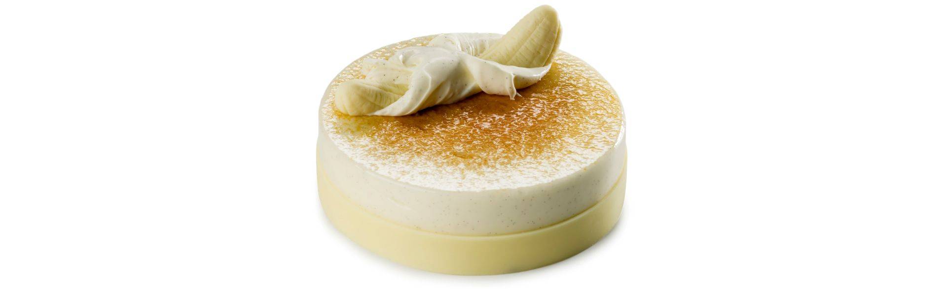 Dosificar 90 g de compota de plátano encima del bizcocho.