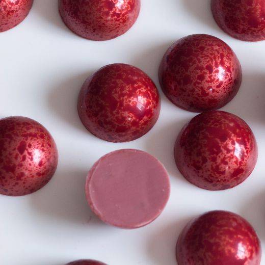 Gracias a su fluidez, el chocolate ruby RB1 es perfecto para diversas aplicaciones, como moldeados, baños, mousses y demás creaciones.