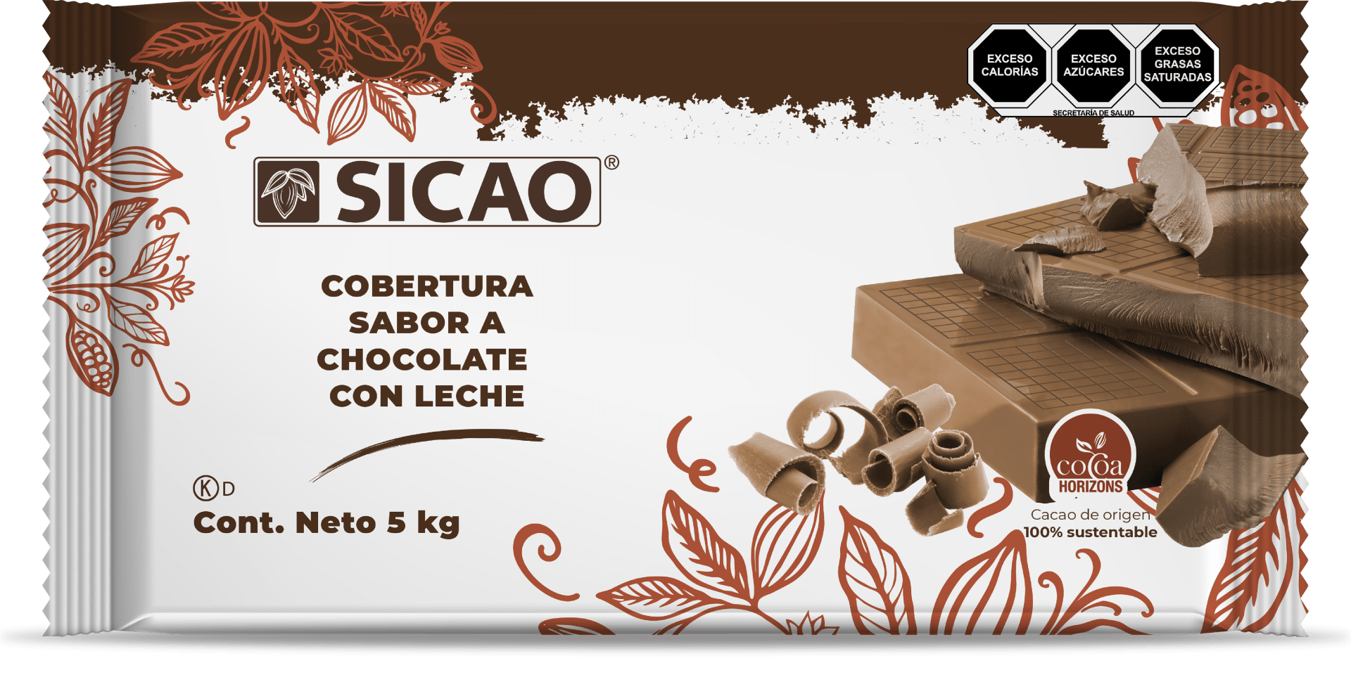 Cobertura sabor a chocolate con leche fácil de derretir, no requiere temperado y resiste altas temperaturas