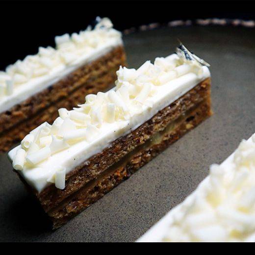 - Bañar sobre chocolate Sicao Selecto Oscuro 66.5% y antes de que cristalice, colocar un circulo de 2cm de diámetro de Pasta SAblée.