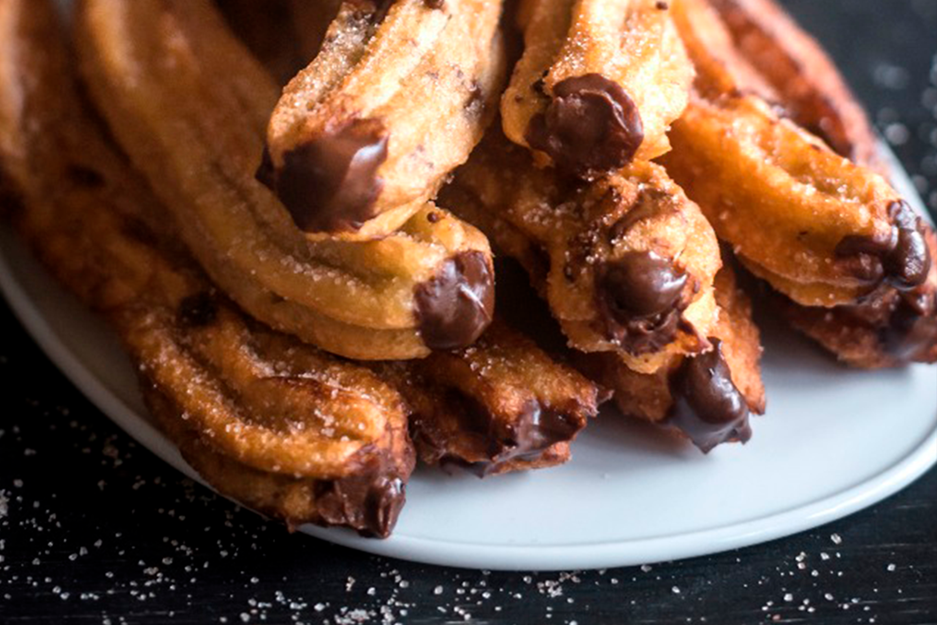 10. Rebosa los churros con azúcar refinada y después colócalos en una charola.