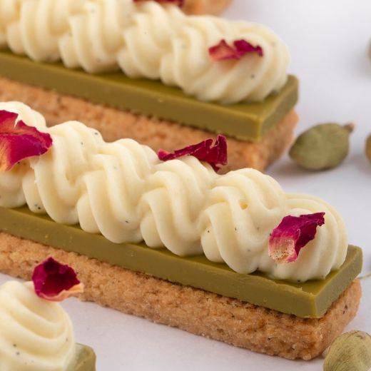 In una placca 30x40, cuocere a 180° per 13 minuti. Riporre in frigo.