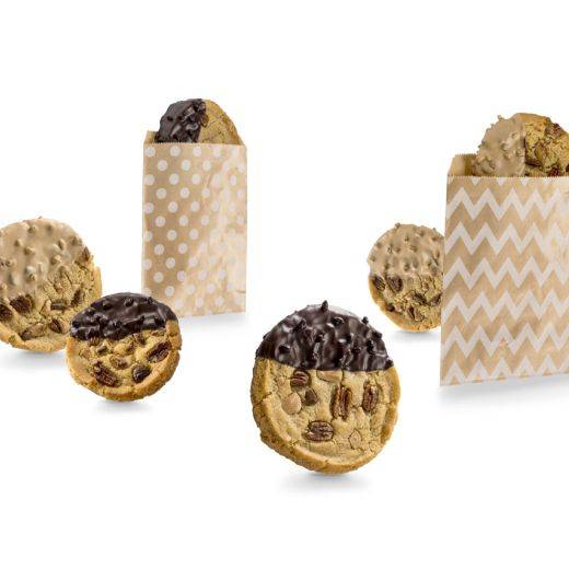 Cospargere i brownie precotti e cuocere nuovamente in forno a 160° per 10 minuti. Lasciare raffreddare completamente prima di tagliare in quadrati 6x6 cm.