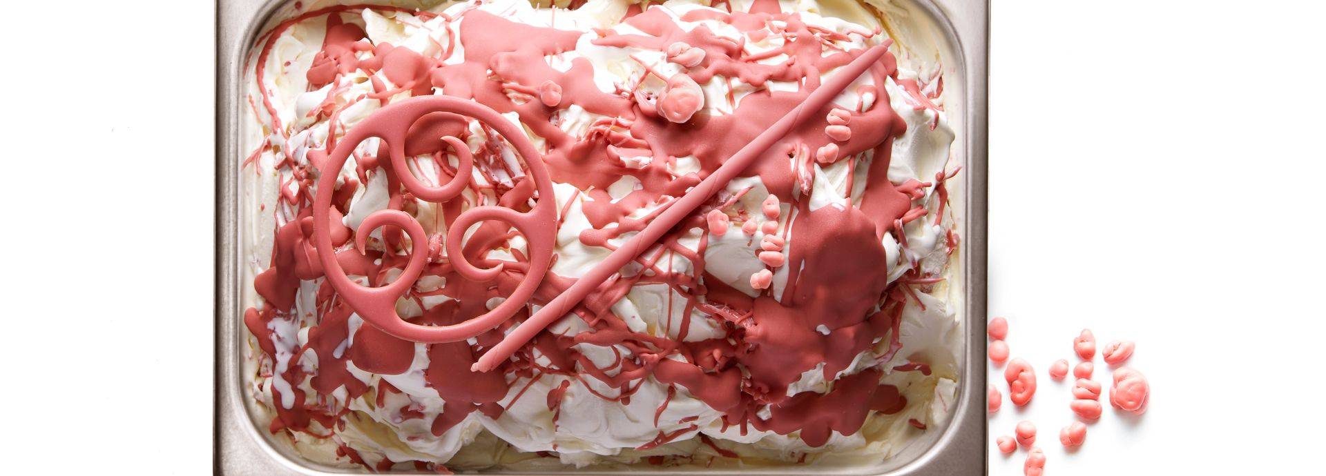 Vul de rest van de gelatocontainer en vermeng met Callebaut® Ice Chocolate ruby RB1. Laat een paar minuten rusten in de shockvriezer