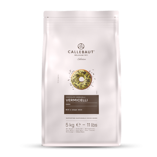 Chocoladestrooisel voor de één, vermicelli voor de ander, of hagelslag voor velen: er is slechts één soort vermicelli die zo intens smaakt en die zo knapperig is, en dat is de Vermicelli Donker. Ze worden gemaakt van intense donkere chocolade van Callebaut® en als u eraan begint kunt u er niet meer afblijven. Ze hebben een intense chocoladesmaak die rijk is aan cacao, met een aangename knars en een ongelooflijke glans.