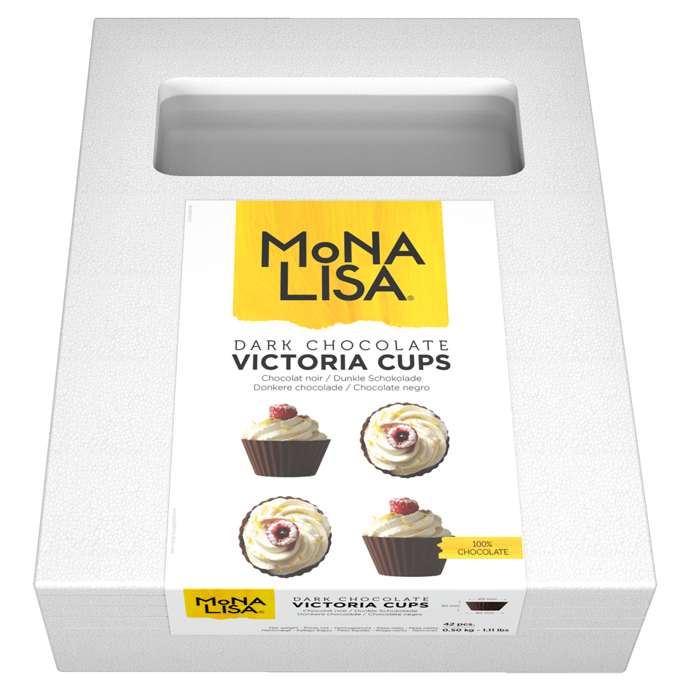 De Victoria cups van donkere chocolade (L: 65, B: 40, H: 30 mm) hebben de perfecte grootte voor een enkele portie dessert. Om te vullen met ganache, crème, mousse of karamel en te versieren met decoraties, fruit, noten ... de mogelijkheden zijn oneindig.