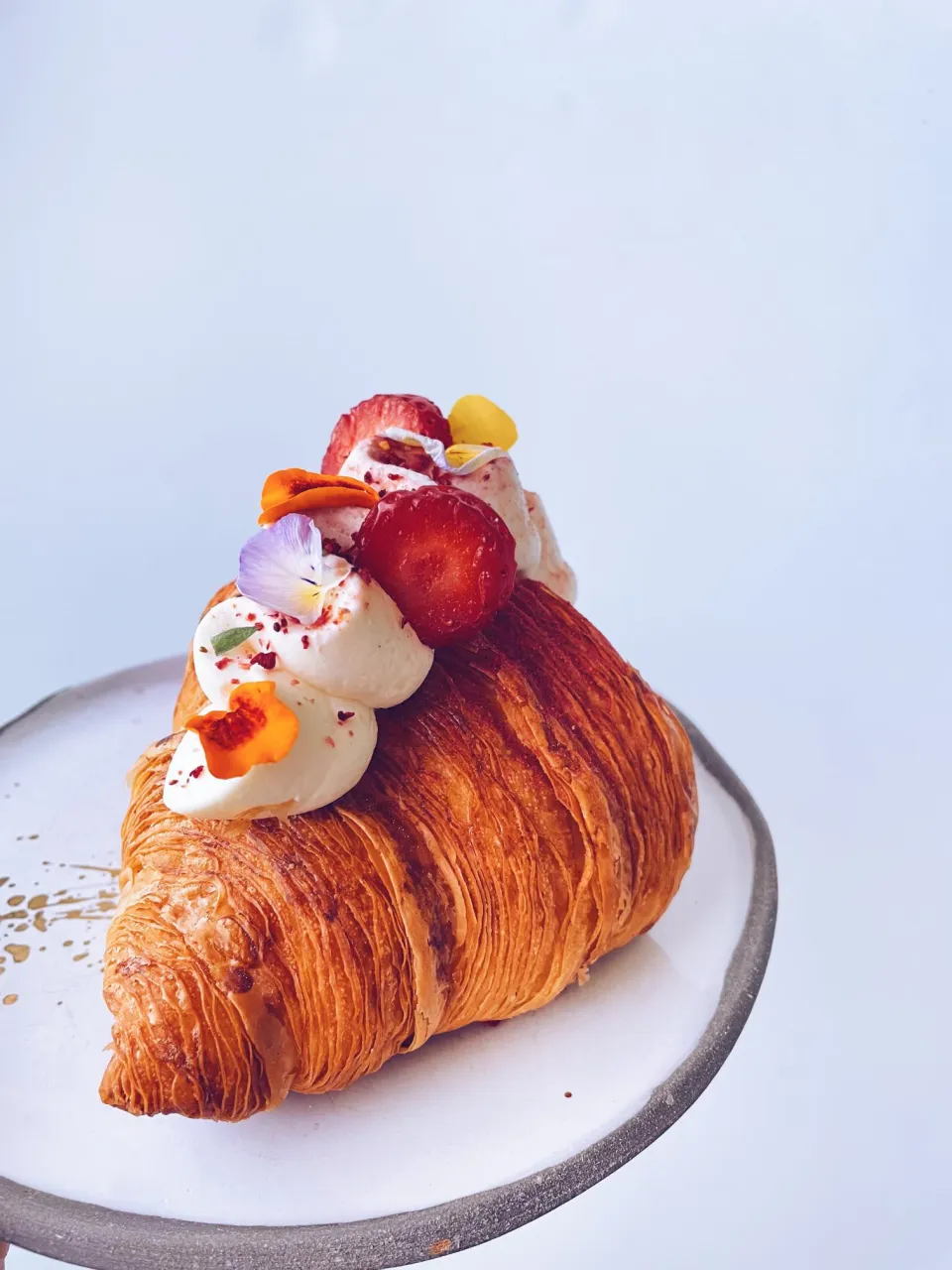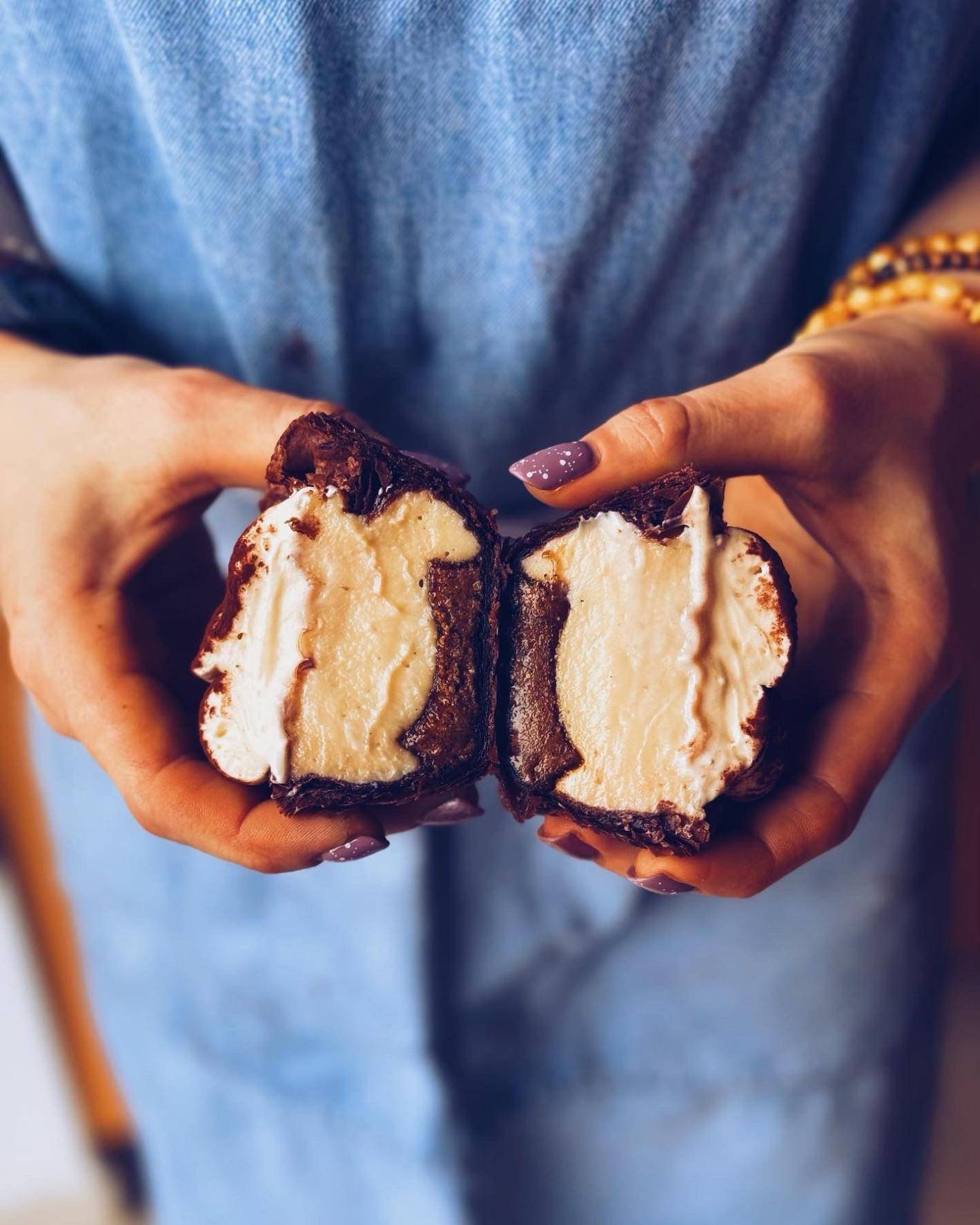 7. Croissant podwójnie zapiekany z cookie dough milky oolong i morelami obsypany płatkami migdałów