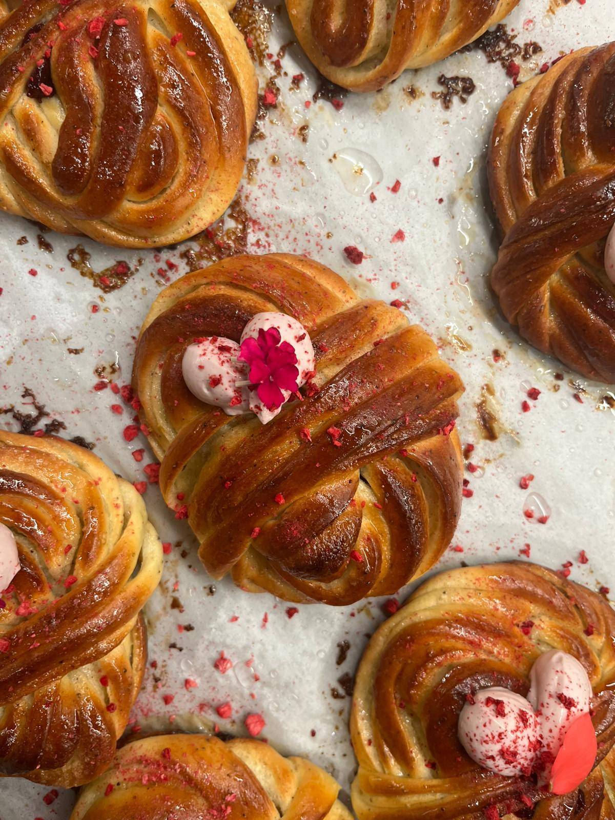 * Maritozzi z konfiturą malinową i kremem Róża/liczi