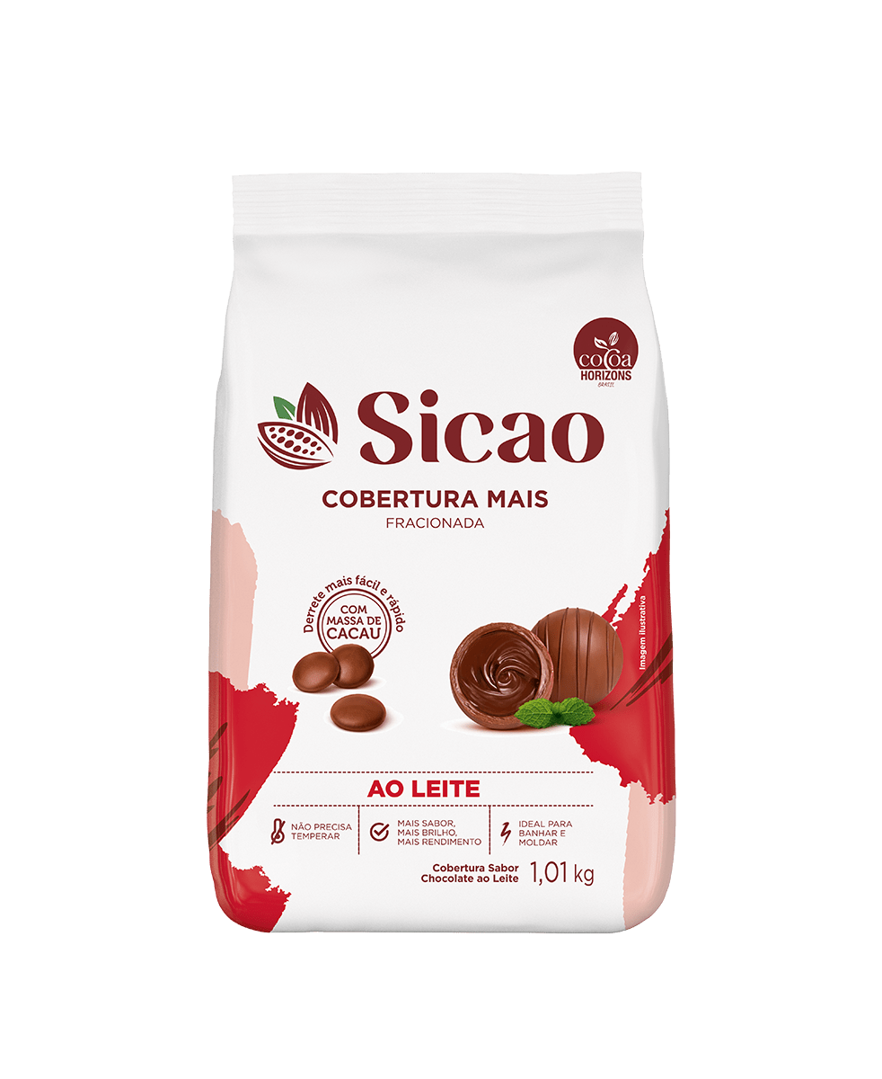 Mais sabor, mais rendimento. A Cobertura Sabor Chocolate Ao Leite Sicao Mais traz o verdadeiro sabor do chocolate, contém liquor de cacau em sua formulação, e a presença de leite a torna mais cremosa. Tem excelente fluidez, brilho marcante e o melhor rendimento do mercado.