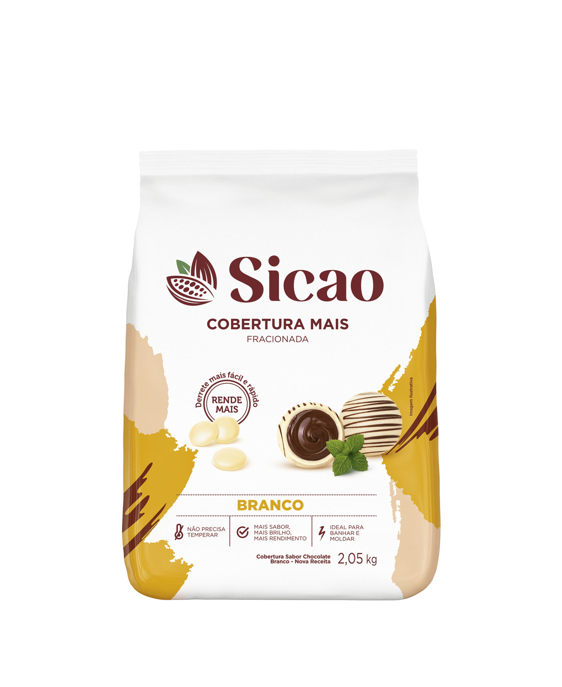 Mais sabor, mais rendimento. A Cobertura Sabor Chocolate Branco Sicao Mais tem sabor marcante de leite, contém leite integral em sua formulação, que se equilibra com a textura macia. Tem excelente fluidez, brilho marcante e o melhor rendimento do mercado