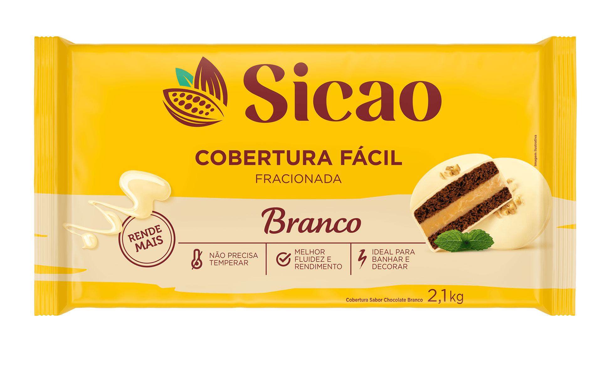 A Cobertura Sabor Chocolate Branco Sicao Fácil traz sabor, maciez, brilho e melhor rendimento na categoria.