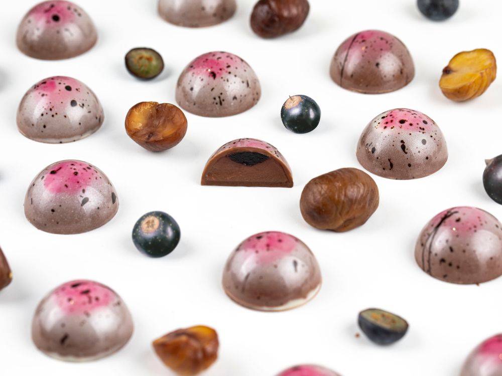 Корпусная конфета с молочным шоколадом Carma и сочетанием вкусов красной смородины, каштана и ванили