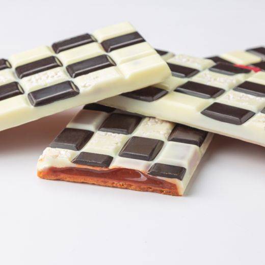 - Заглазировать карамельным темперированным шоколадом.